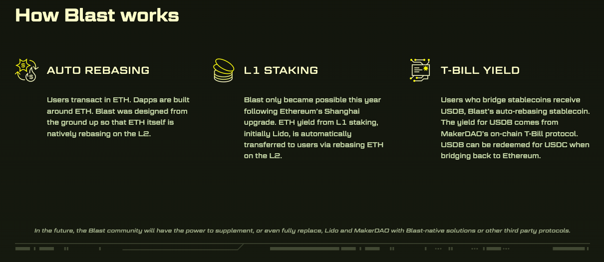 “In the future, the Blast community will have the power to supplement, or even fully replace, Lido and MakerDAO with Blast-native solutions or other third party protocols.”