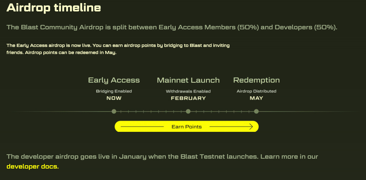 Last thing on this — it’s worth noting that all of these points only account for half the Blast Community Airdrop allocation. The other half goes to developers building on Blast.