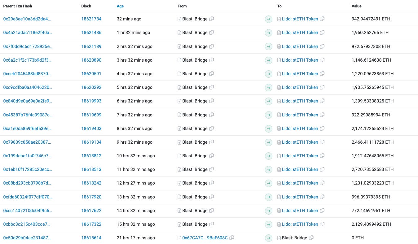 How this relates to Blast is that, as of now, all ETH being bridged across is being staked with Lido.