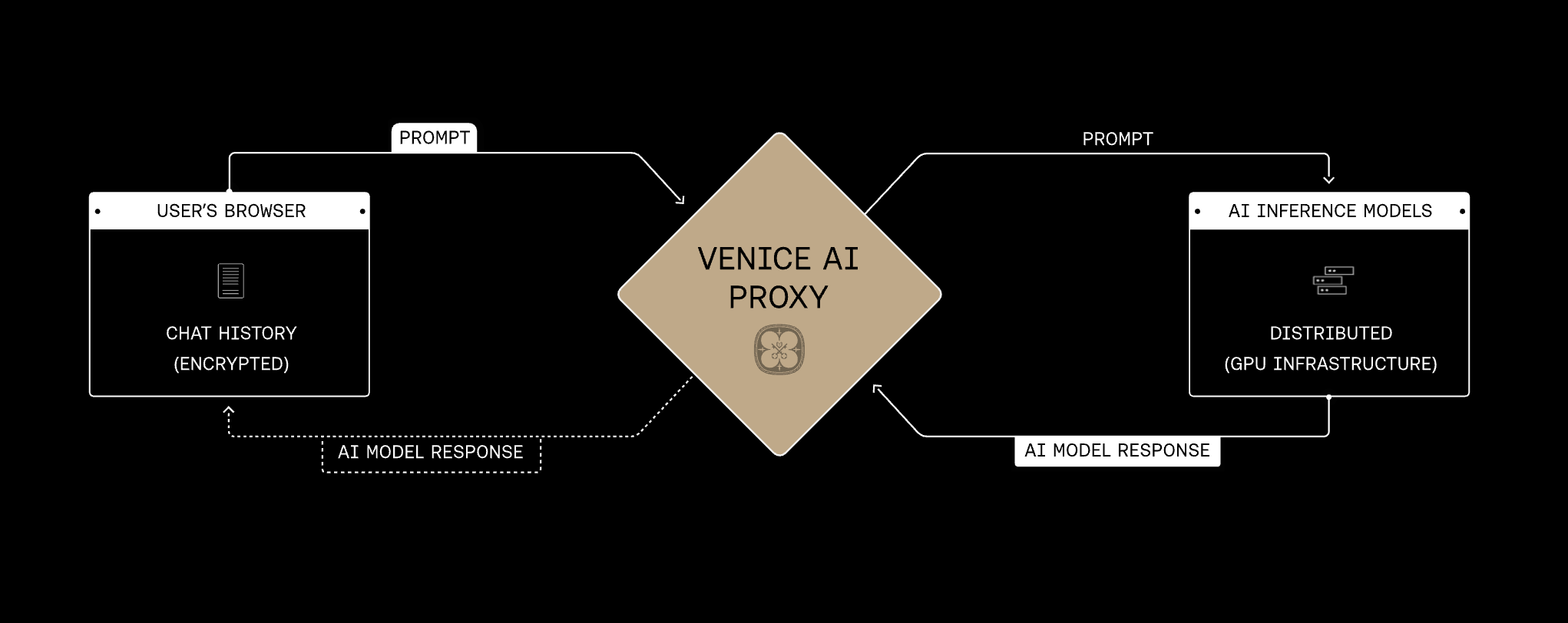 The privacy angle is one of the things that makes them different. They don’t store your prompts or responses. Zero data retention. Every time you use ChatGPT or Claude directly, that data sits on someone else’s servers. Venice routes your requests through decentralized GPU providers over encrypted connections. In other words: your data stays on your device.1