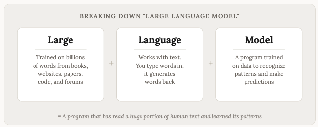 LLM stands for Large Language Model. That’s what ChatGPT, Claude, Gemini, and all the other AI chatbots are built on.