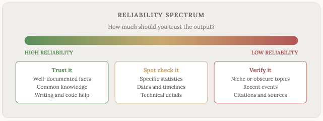 Rule of thumb: the more obscure or specific the fact, the more likely the model is to get it wrong or make it up. If you ask about well-documented topics that appeared frequently in the training data, the model is pretty reliable. If you ask about niche topics, recent events, or specific numbers, then verify the output.