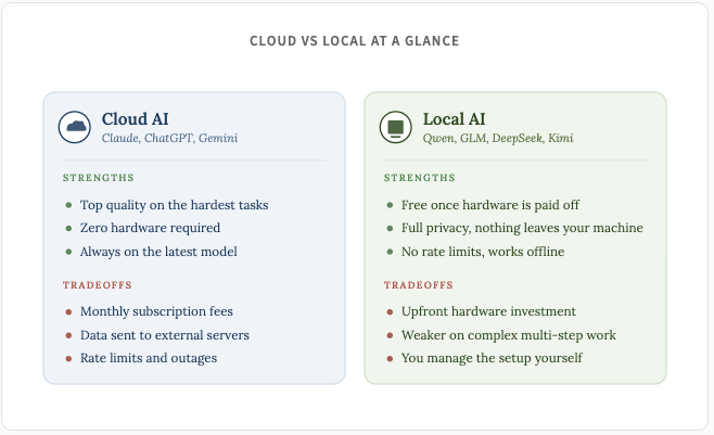 The right setup is both. Cloud for the hard stuff, local for everything else.