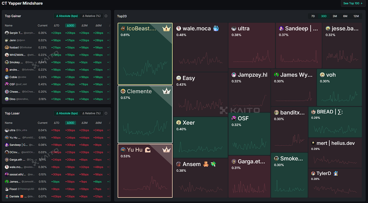 For the sake of brevity, we’ll primarily focus on Kaito and other mindshare projects today as they make up the lion’s share of the current InfoFi market.