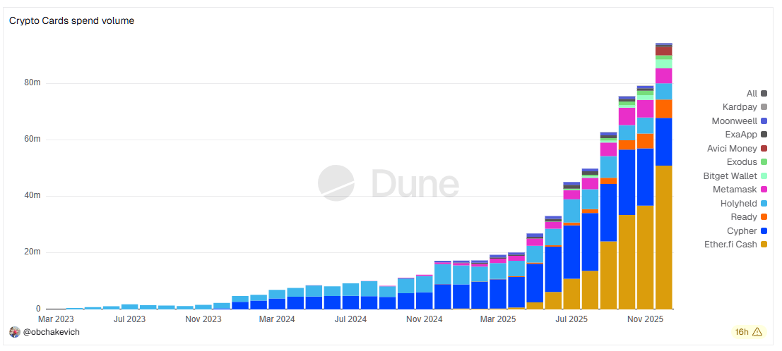 6. Neobank adoption significantly grows, with crypto card usage hitting $500m