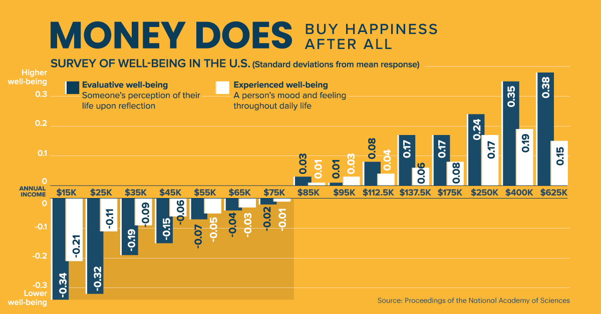 So does money lead to happiness? Yeah, I kinda think it does. It’s not an exact science, and there are massive exceptions, but, it’s hard to disagree with the overall premise.