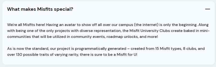 Misfit University - Another 10k generative avatar project with a roadmap dropping tomorrow. What makes this one special? Well, in their words: